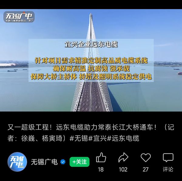 常泰长江大桥的璀璨灯光,不仅点亮长江两岸,更照亮了中国智造从“跟跑”到“领跑”的跨越之路。这条银龙背后,是无数如远东一样的企业,以持续的技术深耕和不竭的创新活力,托举起一个国家的自信与未来。